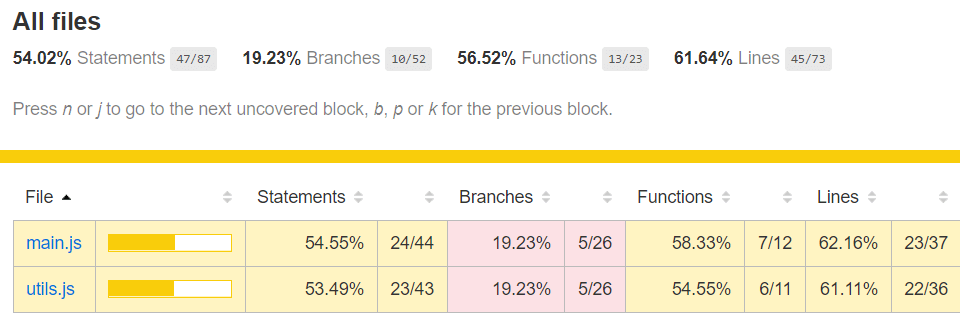 All files | 54.02 | 19.23 | 56.52 | 61.64 | |